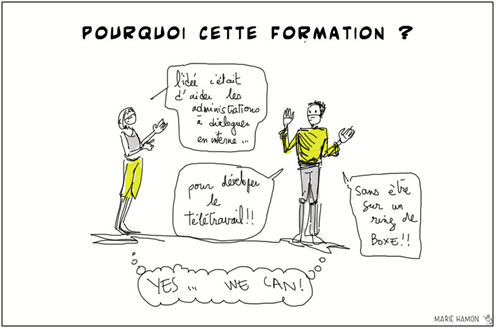 Deux journées denses, des débats de qualité, des participants motivés. Et une illustratrice, Marie Hamon, qui a retranscrit par dessin ce qui se disait, ce qui se pensait et ce qui se faisait tout au long de ces deux journées de formation.