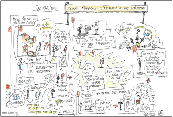 J’ai peu pratiqué cette méthode en situation de formation et peu utilisé le dessin pour délivrer quelques messages-clés. Quelques collègues s’y emploient – et avec succès ! Notamment Jean-Edouard Grésy (voir mon billet de septembre dernier à propos de la publication de la BD La solution Pacifique. L’art de la paix en Nouvelle-Calédonie ; cliquer ici).