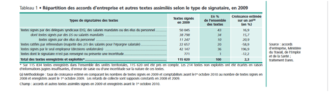 Légende : Chiffres de 2009, à comparer avec ceux de 2021 ! La négociation collective ne date pas du dernier BNC publié…