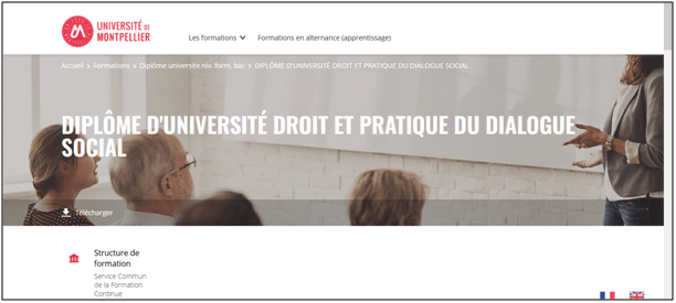 Université de Montpellier, Diplôme d’université Droit et pratique du dialogue social