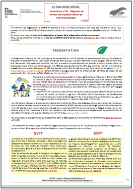 La dernière Newsletter du Dialogue social de la DREETS Centre-Val de Loire n° 29, avril 2023, se penche sur les négociations favorisant la préservation de l’environnement. Au sommaire de cette infolettre (lire ici) :