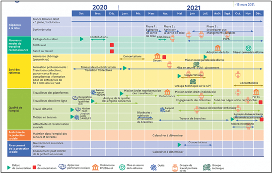 Deux, la confrontation des agendas sociaux. Simultanément à cette « négociation de transposition » un autre enjeu impacte celle-ci et est lui-même impacté par cet enchevêtrement de processus négociés : la définition de l’agenda social entre gouvernement et partenaires sociaux. Ici, même prolifération, car chacun des acteurs de ce jeu de co-construction des normes légales ou négociées, doté de son propre agenda social, entend l’imposer à ses partenaires aux diverses tables, de concertation et de négociation, qui sont programmées.