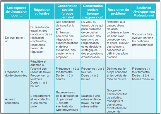 L’ANACT, suite à l’Accord National Interprofessionnel de juin 2013 qui ouvrait la possibilité « d’espaces de discussion » avait donné des réponses pratiques à ce sujet, via la brochure Mettre en place des espaces de discussion (pour télécharger la brochure, cliquer ici).
