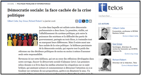 Troisième remarque, d’ordre stratégique. Dans un entretien en 2020 (lire ici), Guy Groux, commentant l’ouvrage collectif qu’il venait alors de co-diriger, Le social et le politique(avec Richard Robert et Martial Foucault ; lire ici) résumait ainsi la question centrale de leur ouvrage : « En quoi, la démocratie sociale peut-elle pallier les effets dus à la crise de la démocratie représentative ? » Six ans plus tard, cette même démocratie sociale, loin de pallier à la crise démocratique, serait s en grand danger d’effondrement, par la faute… des acteurs syndicaux. Que s’est-il passé depuis 2020 et qui fonderait cette assertion ? On ne sait. Les seuls exemples déployés par les trois auteurs sont relatifs à des évènements récents : la palinodie du « conclave des retraites » initié par François Bayrou.