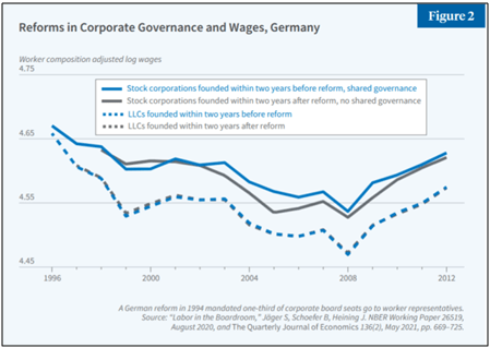 Que disent exactement à ce sujet les auteurs de l’étude ? Essentiellement deux choses : un, les données statistiques, sur durée longue, ne montrent guère d’effets sur les salaires d’une « gouvernance partagée » ; et deux, l’étude de la participation des salariés à la gouvernance des firmes partout en Europe montre une grande variété des différents types de dispositif.