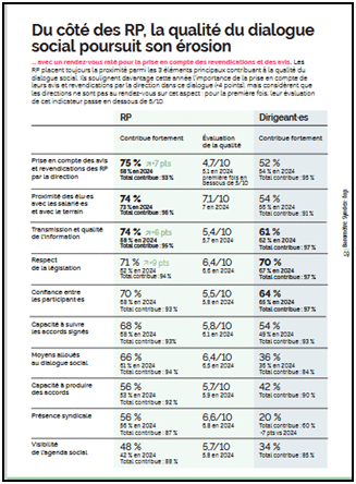 - Seulement 1 DRH ou directeur sur 5 cite la présence syndicale comme un facteur de qualité du dialogue social ;
