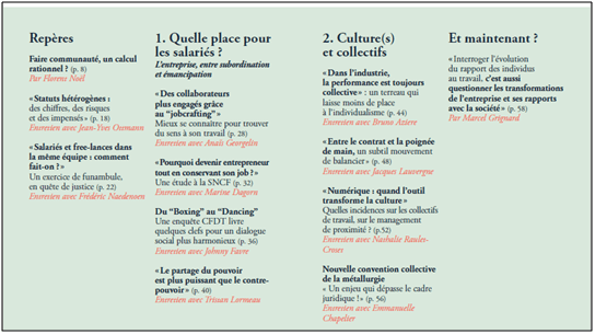 Le propos de Gilbert Cette (économiste), Guy Groux (politiste et récent co-auteur de l’ouvrage L’Etat et le dialogue social) et Richard Robert (éditorialiste à Telos et ancien conseiller politique à la CFDT) se résume en une charge contre les organisations syndicales, notamment la CFDT, à propos de leur contestation de la réforme des retraites. Ce combat aurait desservi, selon ces auteurs, la démocratie sociale, qu’ils jugent donc « hésitante ». Extrait de leur conclusion :