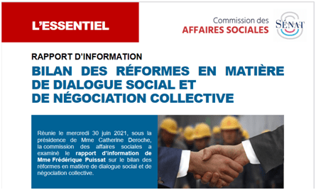 Je reproduis d’abord ci-dessous l’extrait concerné de la synthèse du rapport final (la section 2). Je commente ensuite ces propositions. Il s’agit d’une contribution au débat. Car nul d’entre nous ne possède le remède miracle ; et Mme Puissat a mille fois raison de faire l’effort, au-delà du strict bilan des ordonnances de 2017, de proposer des pistes d’action générales. En discuter, collectivement, échanger nos points de vue et nos suggestions, est cependant un des meilleurs moyens de faire progresser le dialogue social dans notre pays. Car si ce qui se mesure peut s’améliorer, ce qui se discute peut également se dynamiser…