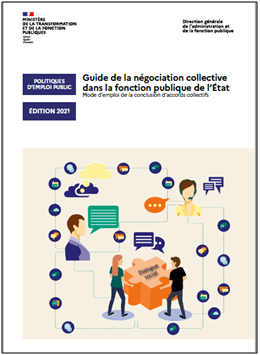 DGAFP – ministère de la fonction publique, 2021, 36 pages. Ce guide explicite le cadre juridique issu de la réforme de la négociation collective dans la fonction publique d’État, portée par l’ordonnance du 17 février 2021. « Il répond », indique le document, « aux questions pratiques que peuvent se poser les acteurs du dialogue social, notamment sur les sujets sur lesquels peut porter la négociation, les personnes pouvant y participer, ainsi que les effets juridiques des clauses contenues dans les accords. Il détaille les étapes de la négociation, de son initiative jusqu’à la signature de l’accord, et recommande des bonnes pratiques à destination des négociateurs. Il précise, enfin, les modalités selon lesquelles l’accord peut être révisé, suspendu ou dénoncé. »