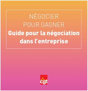 Confédération CGT, 2021, 72 pages. « Informer, former et outiller nos militants et nos délégués CGT est essentiel pour mener à bien la bataille revendicative dans les entreprises (…) Ne cédons pas aux sirènes du fatalisme, veillons et armons-nous syndicalement pour défendre nos conquis sociaux et gagner de nouveaux droits. C’est ainsi que nous avons pensé et construit ce guide de la négociation. » Guide assez complet, mais essentiellement descriptif du cadre légal.