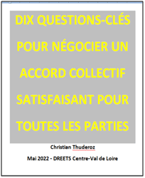 ANACT, 2022, 28 pages. Un petit guide, mais l’essentiel y figure. « L’intention consiste à proposer des clés de lecture aux acteurs du dialogue social pour améliorer leur capacité à négocier. Il s’agira d’offrir aux négociateurs des points d’appui pour mieux conduire le processus de négociation (…) Ce n’est pas un petit traité de la négociation ; il n’appréhende ni les aspects tactiques ou stratégiques, ni les dimensions psychologiques ou encore les outils de la négociation. Volontairement, la négociation proprement dite (déroulement des séances, tenue de bilatérales, travaux préparatoires, établissement des mandats) n’est pas abordée. Il propose plutôt des apports de contenu et de méthode pour tenter de faire avancer certaines idées encore peu ou mal appréhendées dans les entreprises, notamment la négociation. »